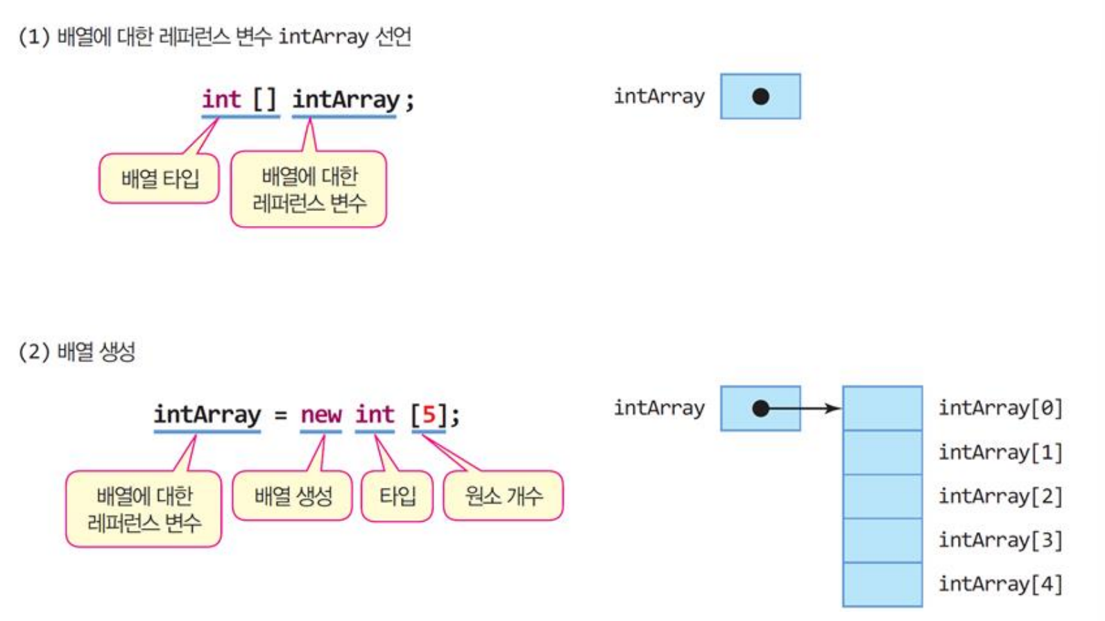 int[] intArray = new int[10]; // 선언과 동시에 생성