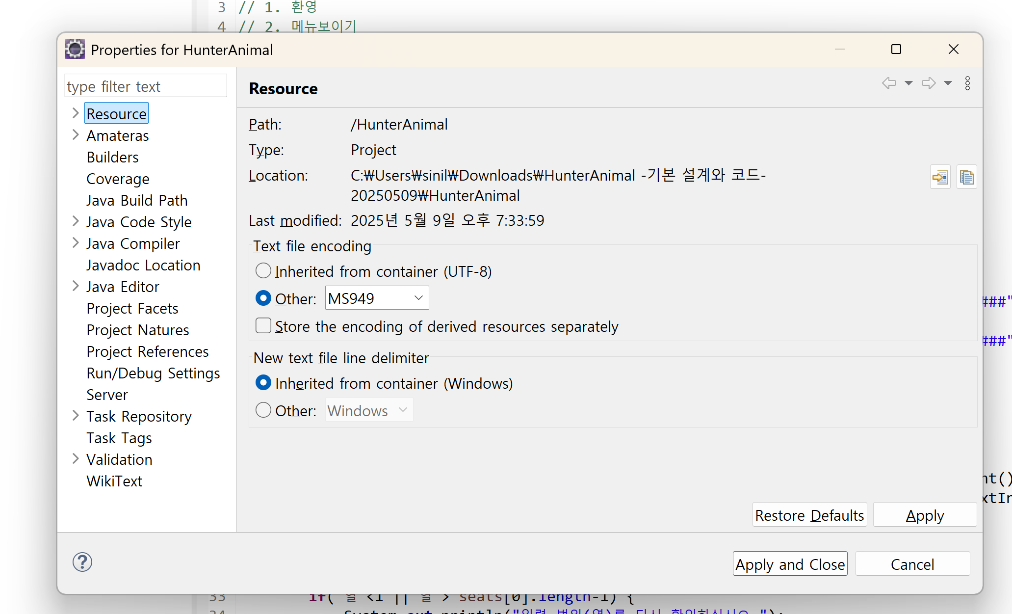 HUNTER & ANIMAL 과제를 하는데 사전제공된 코드가 인코딩과정에서 문제가있었다.