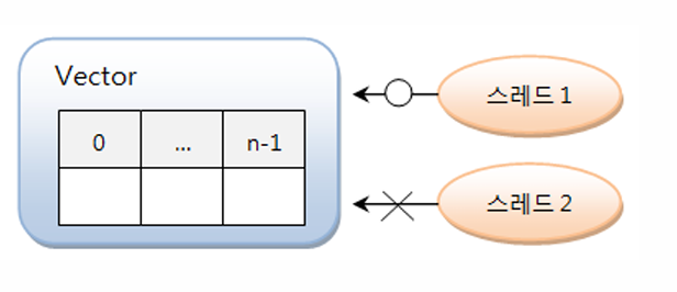 복수의 스레드가 동시에 Vector에 접근해 객체를 추가하거나 삭제하더라도 안전하다.
